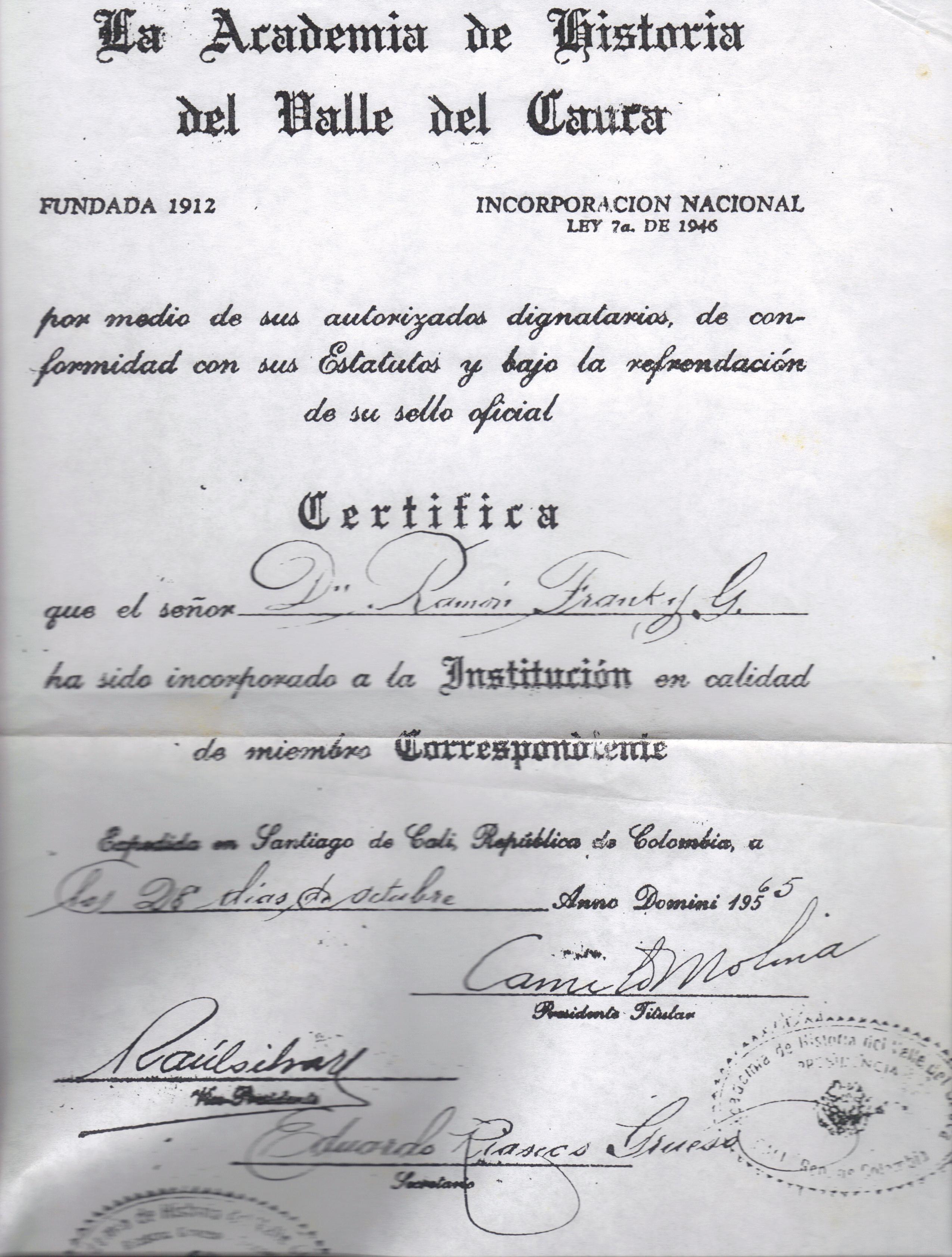 Diploma de la Academia de Historia